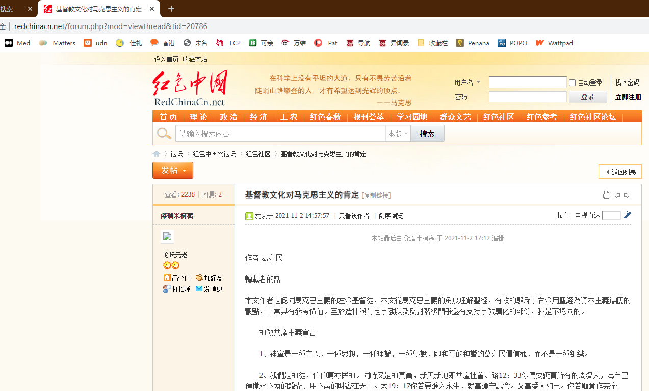 红色中国网论坛›红色社区›基督教文化对马克思主义的肯定